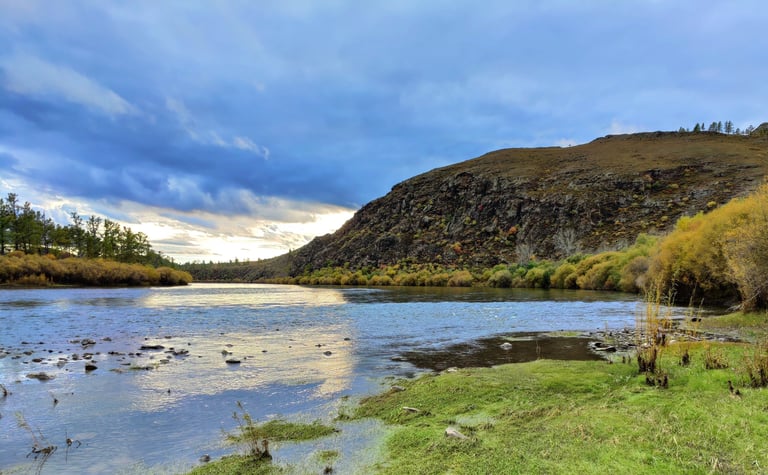 Embark on a captivating journey along the Eg River, an enchanting natural paradise that unveils the true essence of Northern Mongolia across over 350 kilometers, the Eg River basin presents a remarkable blend of natural wonders, captivating all who venture along its serene path. Relax and unwind as you take in the depths of the area's surroundings and the serenity of its picturesque nature and vibrant local tradition and culture along your journey.