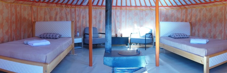 There are two accommodation options – the lodge is a first-class wilderness lodge with 5 first class-appointed houses with double occupancy as facility designed to meet the needs of the discerning guests and also well-appointed traditional yurt called as a Ger a separate amenity with hot showers and flush toilets, where you can really get a feel for the wilderness surrounding you without compromising on comfort. Accommodating in ger in the lodge provides a high-end and comfortable experience, blending the traditional nomadic lifestyle with modern amenities. Our gers at the lodge are spacious and well-furnished, featuring comfortable beds, quality linens, and tasteful decor. Inside, traditional interiors feature unique Mongolian accents brought up to speed with modern amenities from a wood-burning stove to warm blankets providing all the comforts of the modern age.
